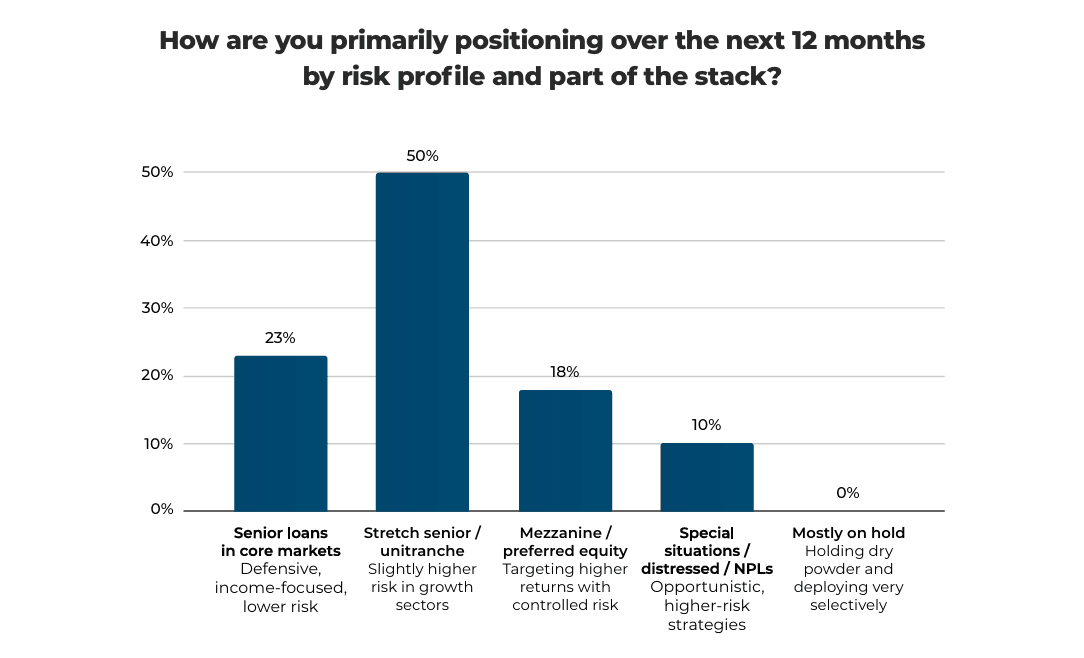 The survey provides a timely snapshot of prevailing sentiment and strategic intent across the European real estate credit and debt landscape. The results indicate a generally optimistic and active market, with participants demonstrating a clear preference for slightly higher-risk strategies focused on growth sectors, though stability in core markets remains a strong focus.