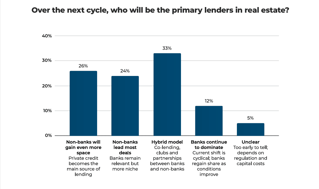 Overall, the results suggest that non-banks and hybrid models will increasingly dominate the lending landscape in real estate, reflecting a broader trend towards diversification in capital sources.