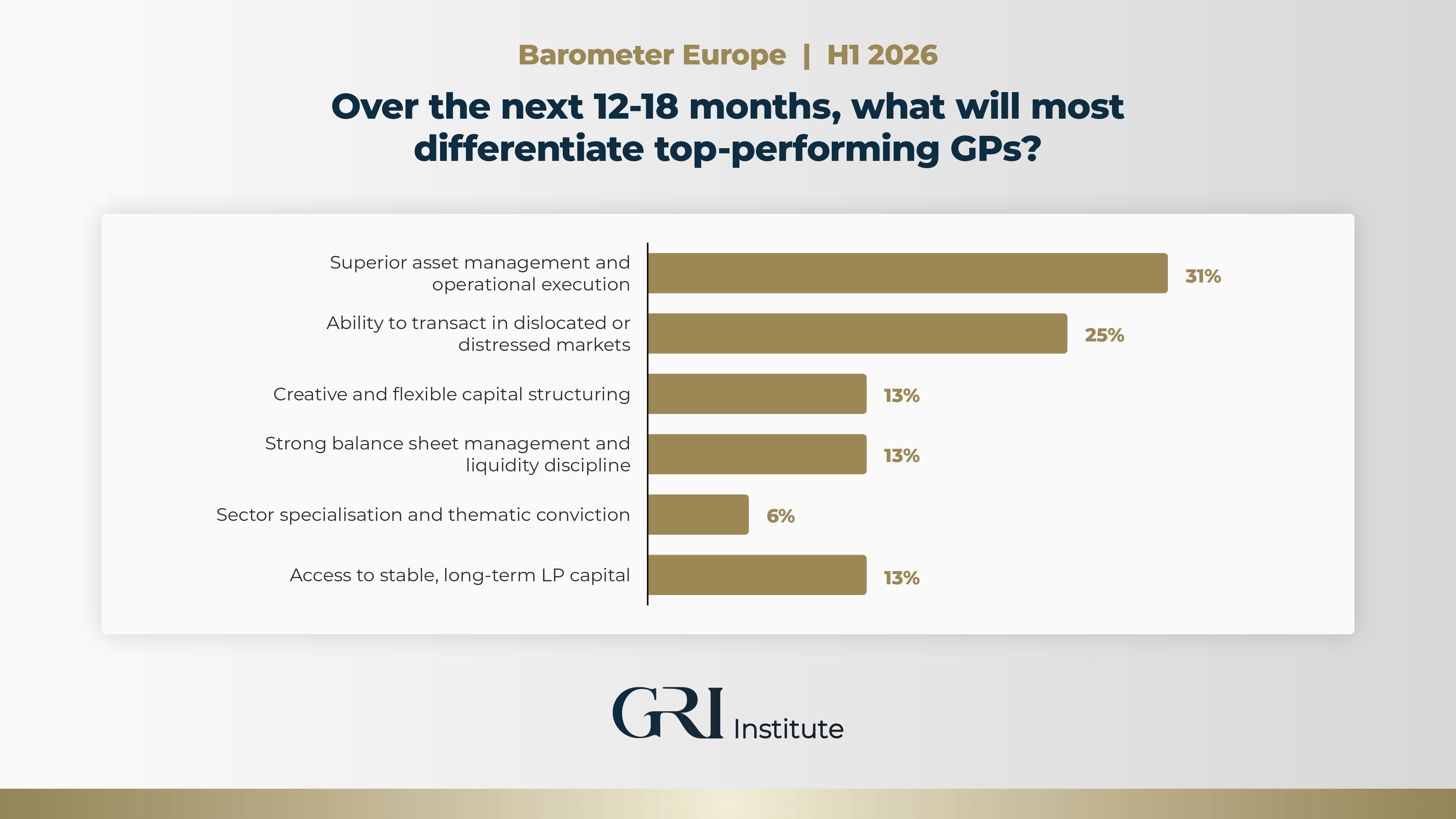 Credit: GRI InstituteEurope’s real estate recovery is characterised by cautious LPs, the “defense dividend”, and specialised sectors