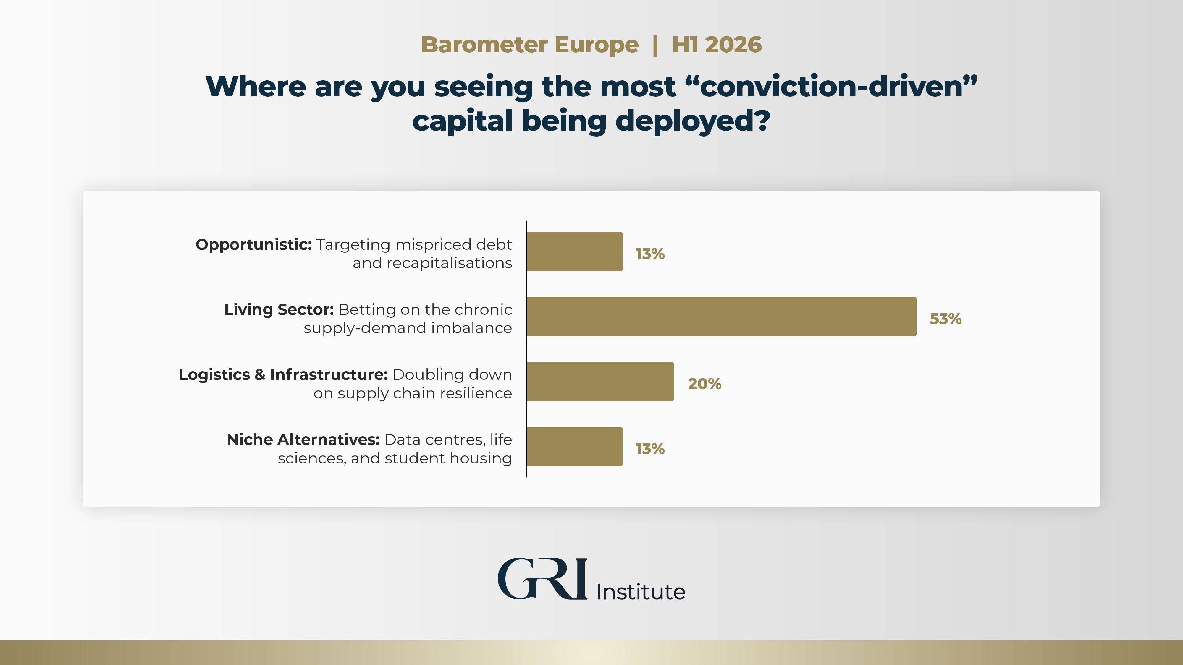 The living sector emerged as the primary beneficiary of "conviction-driven" capital, with more than half of respondents identifying it as the top area for deployment due to a chronic supply-demand imbalance.