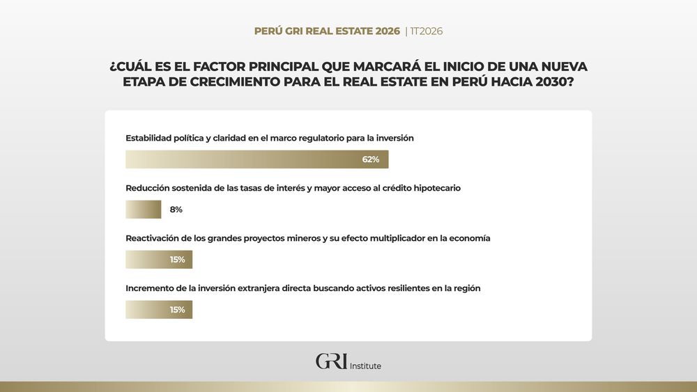 Esta radiografía, respaldada por la encuesta a la alta dirección durante el Perú GRI Real Estate Summit 2026, arroja una conclusión ineludible: el próximo ciclo de crecimiento no depende de la disponibilidad de fondos, sino de la urgencia de modernizar la gestión pública para avanzar al mismo ritmo que la inversión privada.