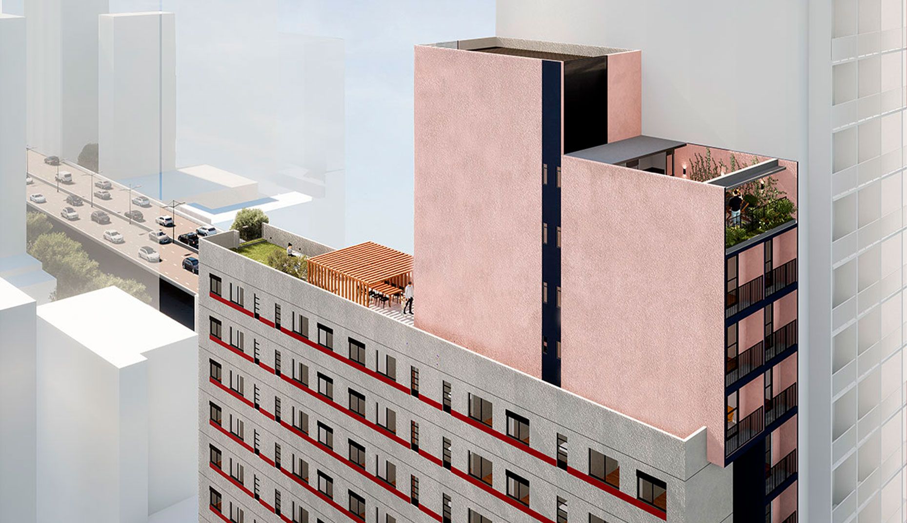 Projeto do Bem Viver Design com Minhocão ao fundo. Crédito: Divilgação/Magik JC